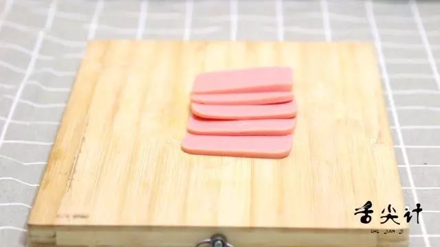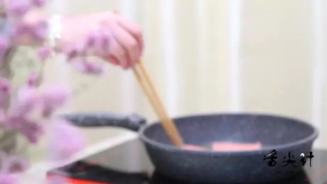 锅中放少许油,油热后煎炸火腿,两面金黄后盛出备用