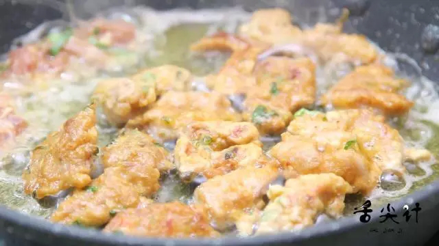 一面炸酥后翻个边,反复多翻几次,待颜色均匀、外酥里嫩,就可以出锅品尝啦