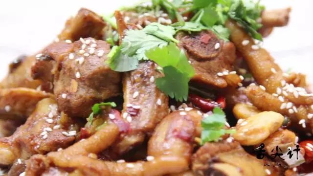 炒熟后起锅,撒点芝麻和香菜,干锅凤爪排骨就完成咯