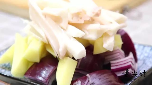 干锅看起来满满一大锅,什么东西都有,其实工序并没有大家想象的嘛呢复杂哦。先把土豆、洋葱、藕、姜蒜等配料切成小块或者细末