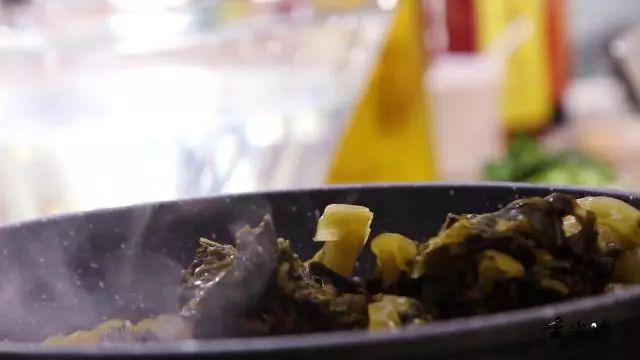 锅中倒油,放入酸菜、香料、辣椒、花椒等配料稍稍翻炒,炒出香味后倒入清水,盖上盖子煮汤
