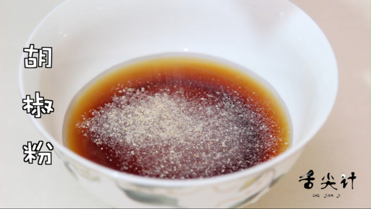 5.准备鸡翅的酱汁(一小碗清水中倒入适量的生抽,糖和胡椒粉)搅拌均匀