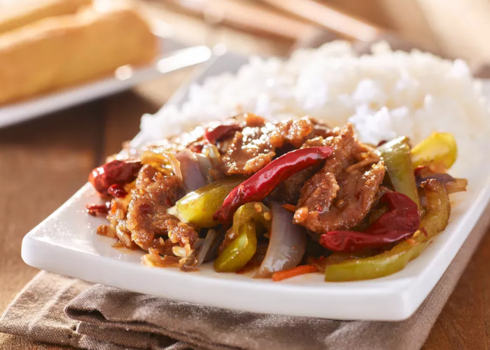 这道菜的牛肉是炸过的,所以吃起来会比原生牛肉更有嚼劲,但同时也比较脆,反正别有一番风味。