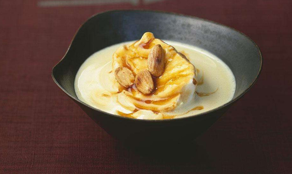 但看这个名字可能会让你产生错误的理解,这道甜品通常是用杏仁做的,而杏仁是要浸泡在水里的,然后再提取牛奶,并添加凝胶物质后就成了杏仁冻。