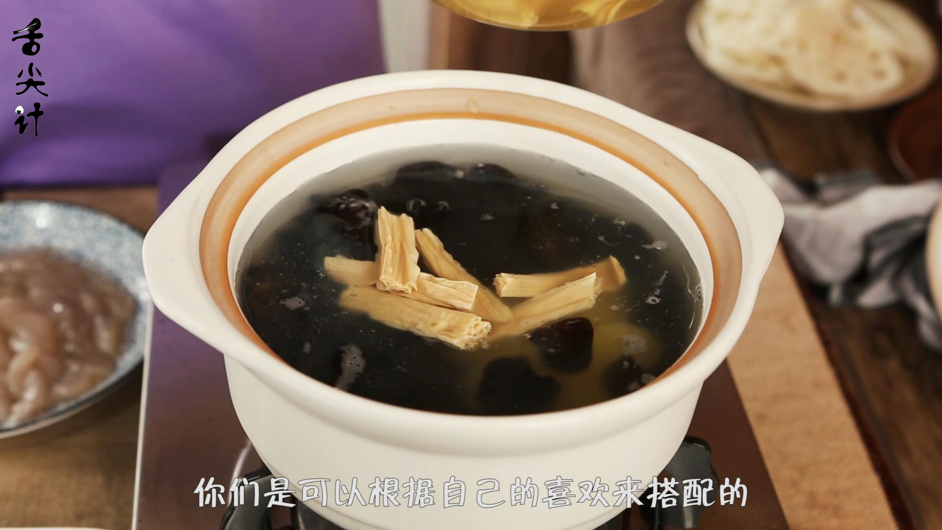 第四步:把蔬菜焯水。藕片可以最后煮,这样保持它的脆感。香菇需提前煮,煮它的时间要多一些。