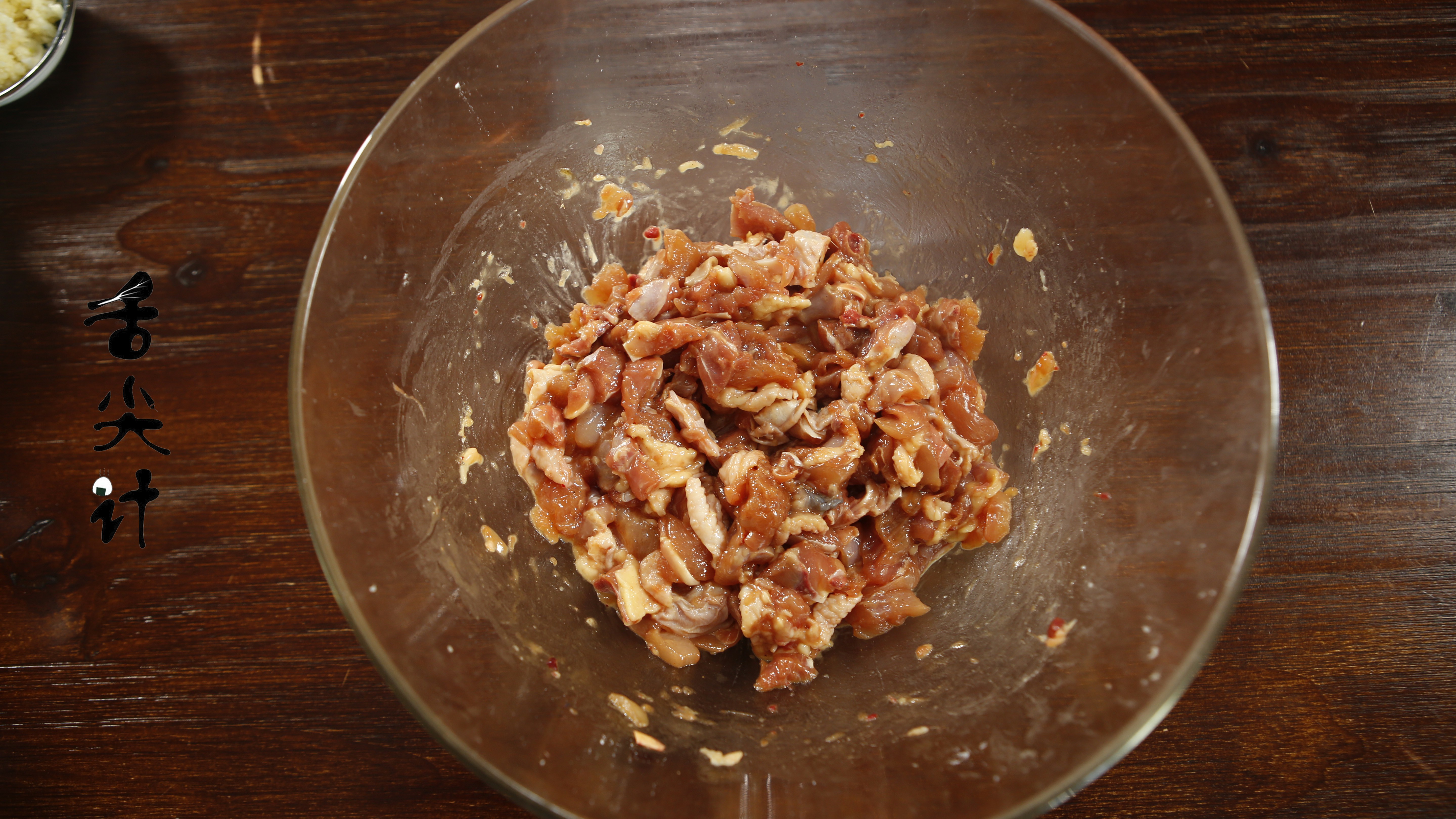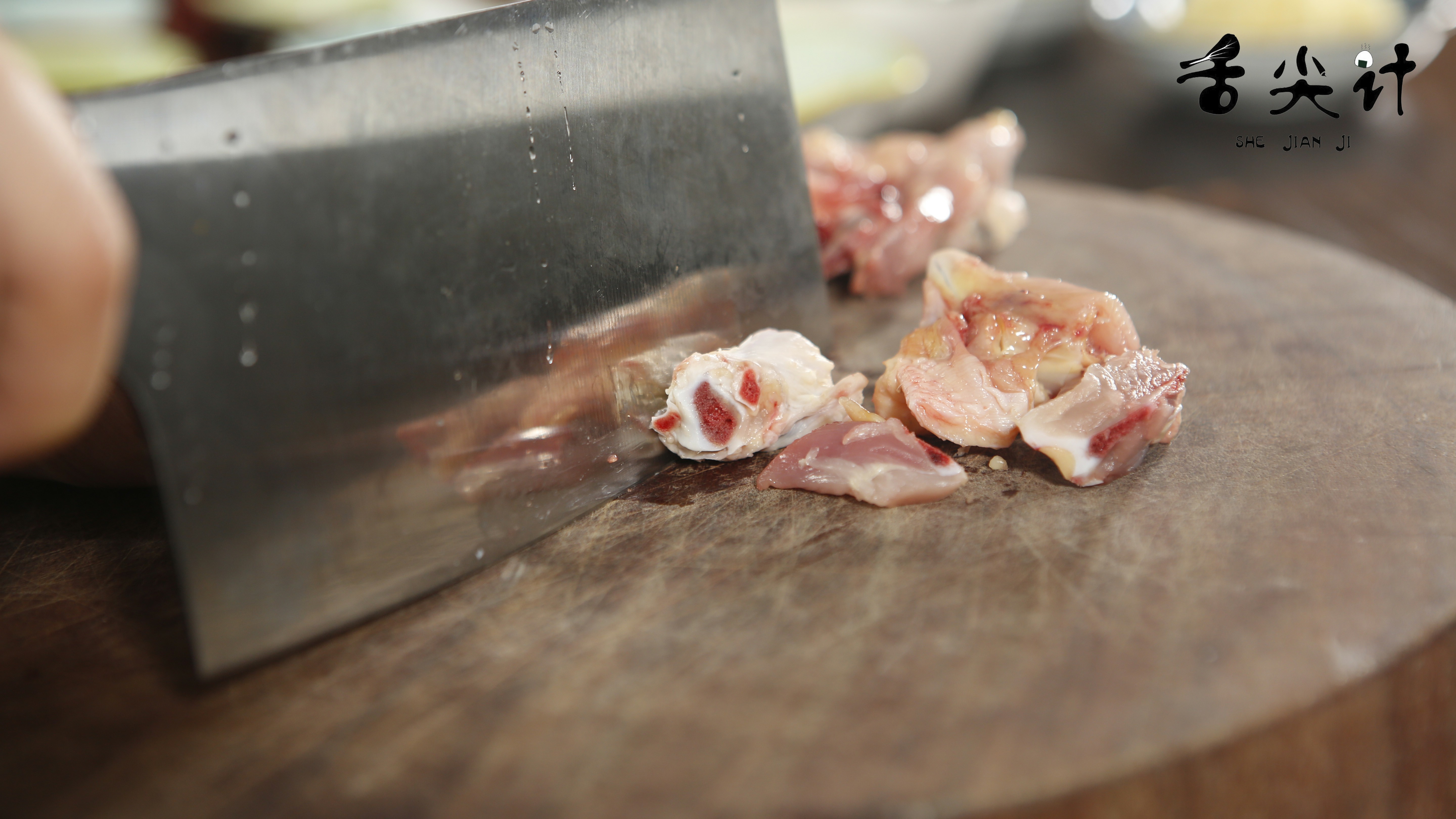1、我们先把仔鸡用清水洗一下,去掉它身上多余的血沫,然后用一块干净的帕子把鸡肉表面的水分擦干,不要小瞧这个步骤,这样鸡肉口感更佳。切鸡肉的时候,先把鸡爪切掉,然后把鸡肉切小块一点,这样方便入味。
