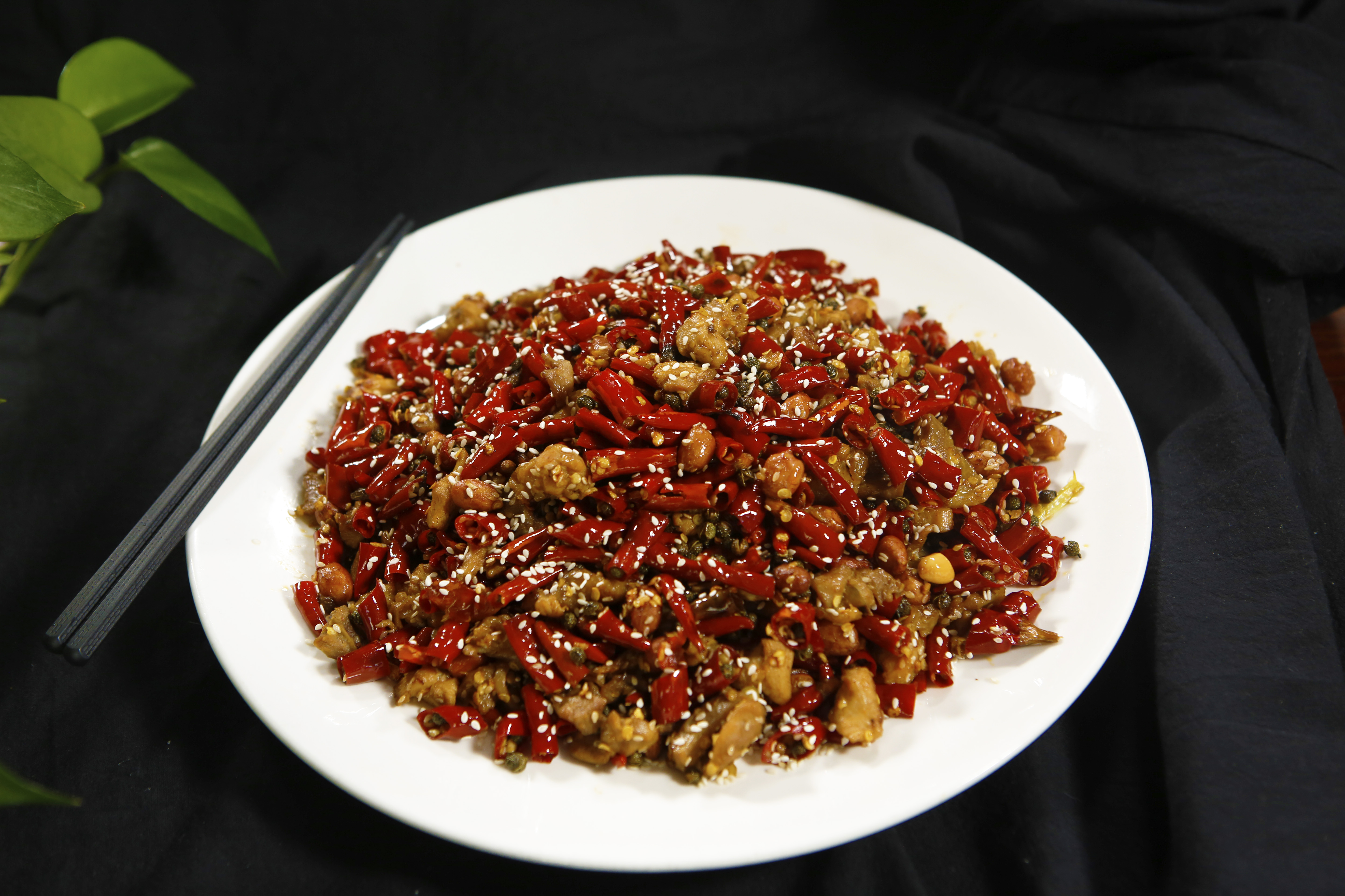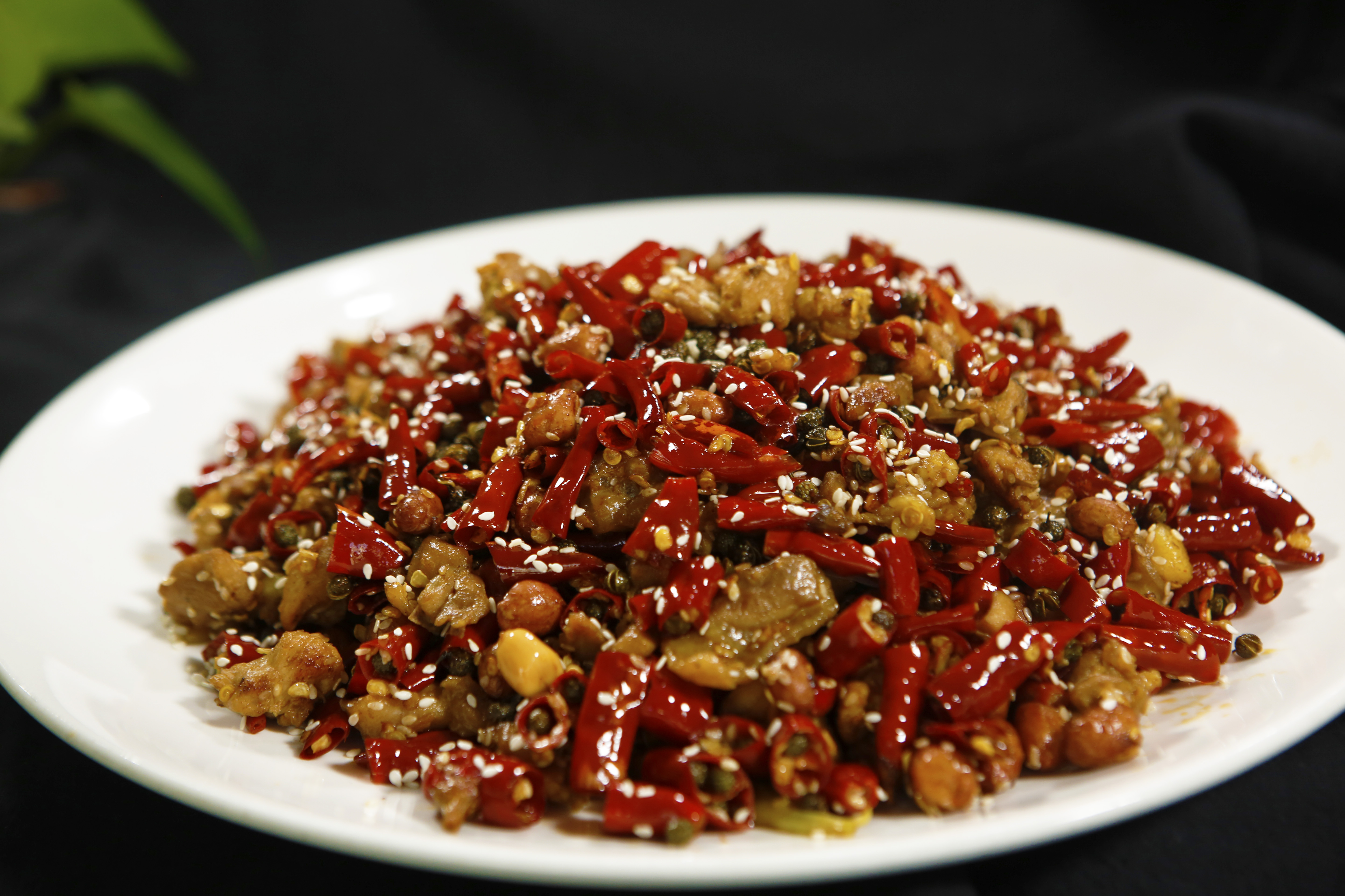 一道菜就像一篇故事,本该唱主角戏的鸡丁却极其大度,大度到配角的戏份远远超过的主角。好的辣子鸡,必须是干辣椒盖过鸡丁,一眼看上去先是满盘的干辣椒段,然后才发现色泽金黄的小鸡块散落其间,辣椒与鸡块交相辉映。直麻直辣的味觉冲击和在辣椒堆里找鸡肉的快感,造就了这道辣子鸡的特别风味。