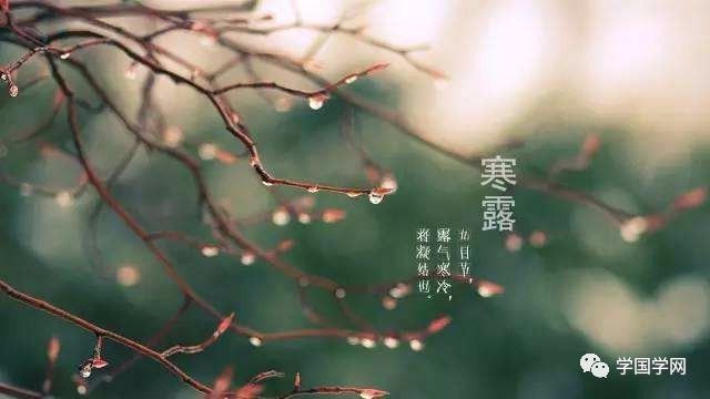 《月令七十二候集解》说:“九月节,露气寒冷,将凝结也。”寒露的意思是气温比白露时更低,地面的露水更冷,快要凝结成霜了。露水盈盈,寒气渐盛,更是勾起了诗人们的无限诗情。