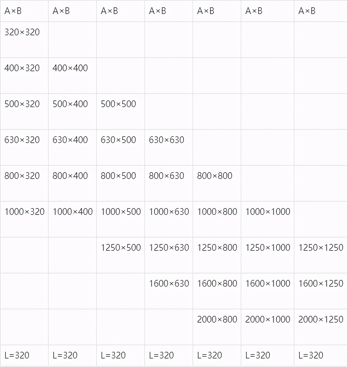 圆形防调节阀 FFH—7 规格(mm)
