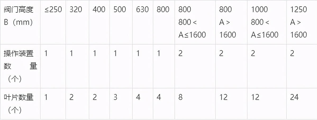 各类防火阀操作装置及叶片数量