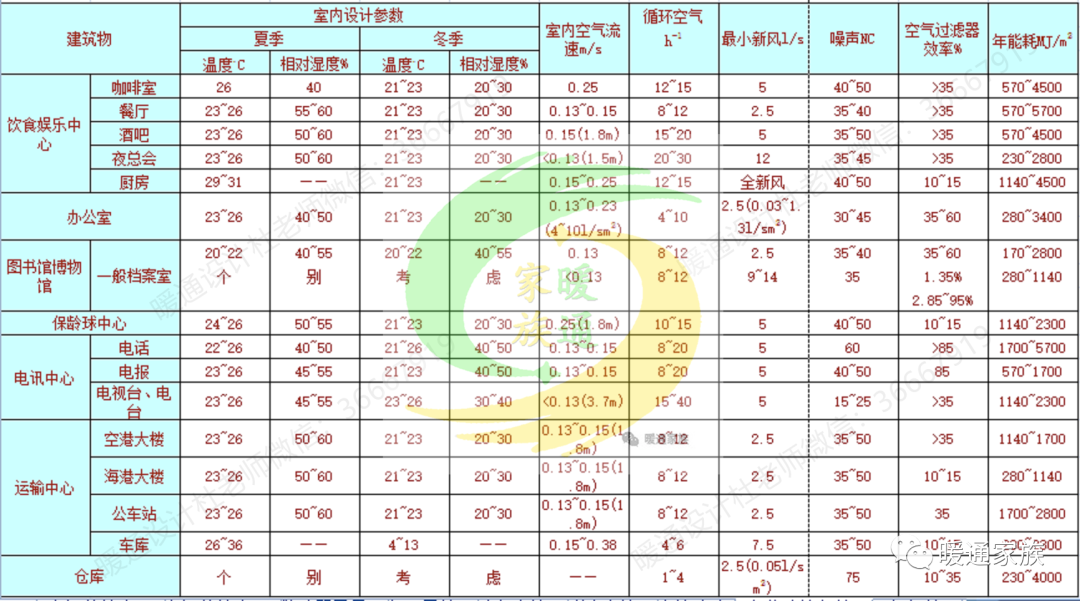 商业和公共建筑的空调设计参数,很多人都找不到的资料,值得收藏