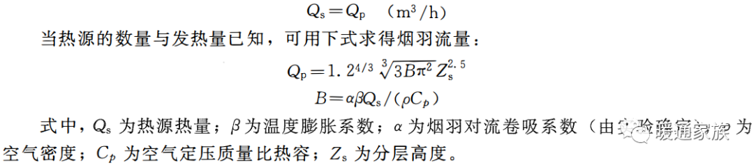 (3)送风量的确定﹐根据置换通风热力分层理论,界面上的烟羽流量与送风流量相等。