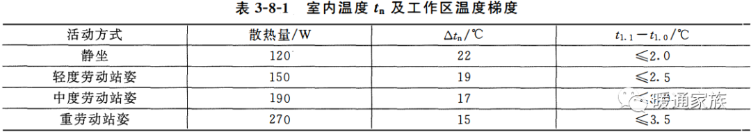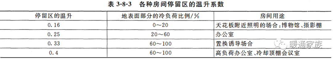 停留区温升系数c也可根据房间用途确定。表3-8-3列出各种房间的c值。