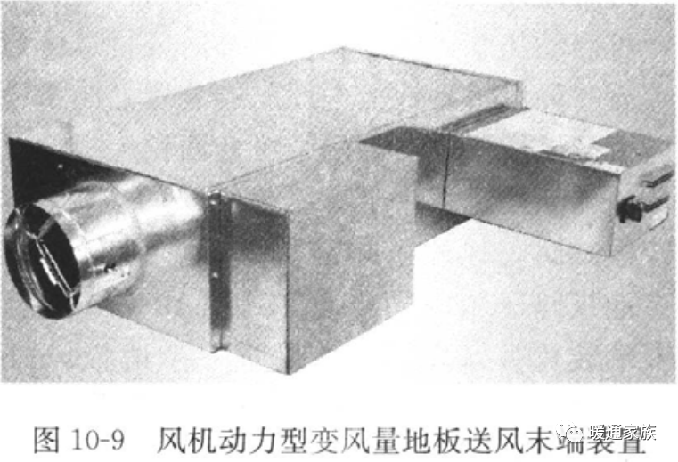 图10-9为美国某公司生产的一种串联式风机动力型变风量地板送风末端装置。这种变风量末端装置一般应用在零压地板送风静压箱的空调系统。