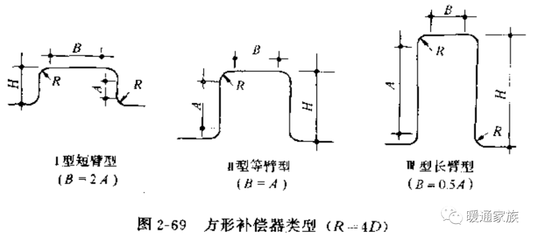 方形补偿器可分为短臂型、等臂型和长臂型(图2-69)。