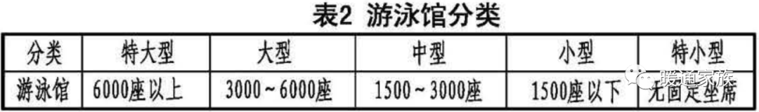 根据使用功能不同,游泳馆建筑可分为康乐用游泳馆和体育建筑游泳馆。体育建筑游泳馆分为比赛用和非比赛用。比赛用游泳馆建筑根据其使用要求和规模进行体育建筑的分级和游泳馆分类,见表1、表2。