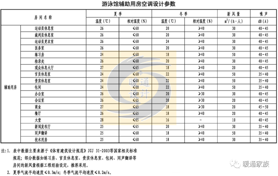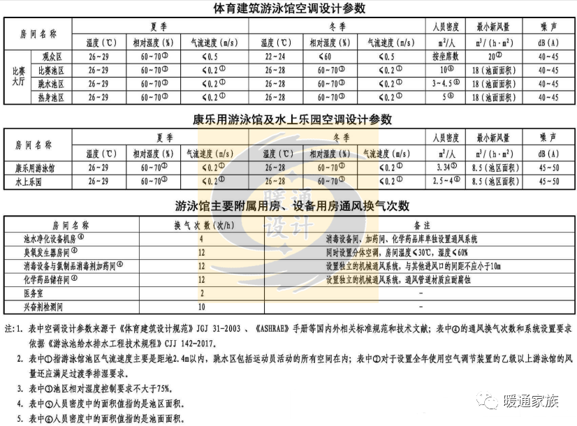 游泳馆暖通空调室内设计参数总结,暖通设计师非常难找到的资料