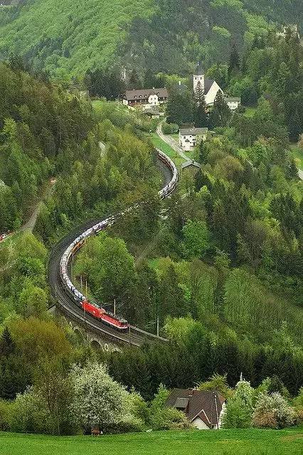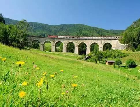 坐上这趟列车,从风景如画的因斯布鲁克,一路向西,穿过横跨群山的特里桑纳高架桥,穿过漫长的阿尔贝格铁路 …… 蓝天、雪山、密林、一路走一路皆是美景。