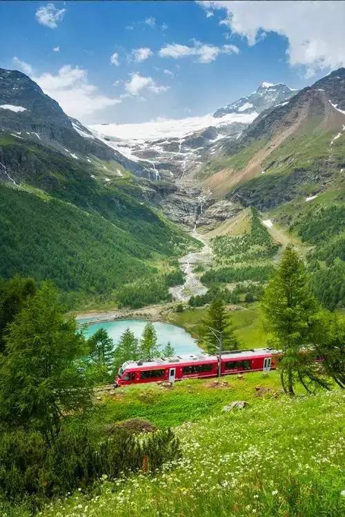 从库尔或圣莫里茨出发,一路坐到意大利的蒂拉诺,途径了雪山巍峨,冰川壮丽的寒冷北方,和湖泊晶莹、乡村诗意的温暖的南方,将瑞士冰火两重天的风景尽收眼底。