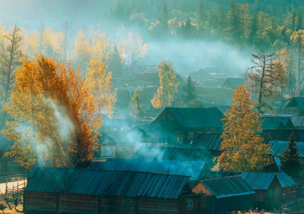 清晨的雾气在河谷中缓缓的升腾,村落间炊烟缈缈,静静的白桦林,牛羊无忧无虑不知疲倦地啃着草……这样的白哈巴,简直就是陶渊明理想中的牧歌田园。