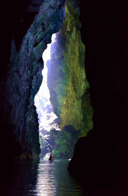 进出坝美村,你需要坐着小船,穿过1公里长的溶洞,而出洞时,眼前土地平旷,屋舍俨然,门前是宽阔的田野、屋后有青翠修竹,这不就是陶渊明笔下的“世外桃源”么?