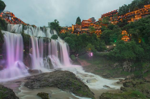 这是一座“挂”在瀑布上的千年古镇,因1986年的电影《芙蓉镇》在此拍摄而声名远播。五里长街的两侧布满了古老的吊脚楼民居,千年的时光好像并没有改变它太多,它依旧是秀美的,散发着温柔的光。
