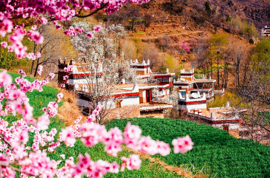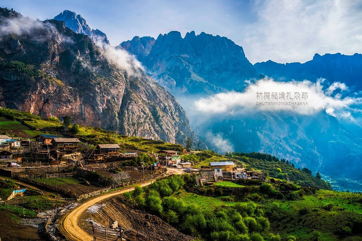扎尕那,深藏在甘南3000米的高山之中。在这里,一座座木屋,和青稞和油菜花黄绿相间,错落有致,而屋边木头围起的篱笆,像孩子们乱搭的积木。