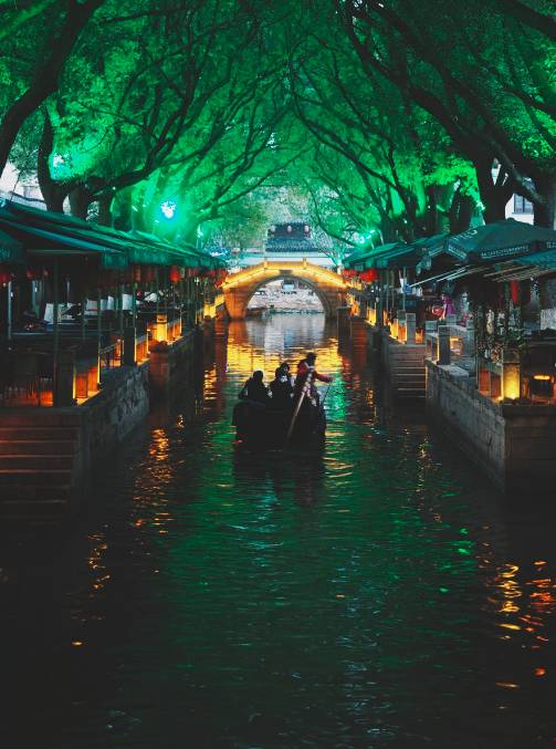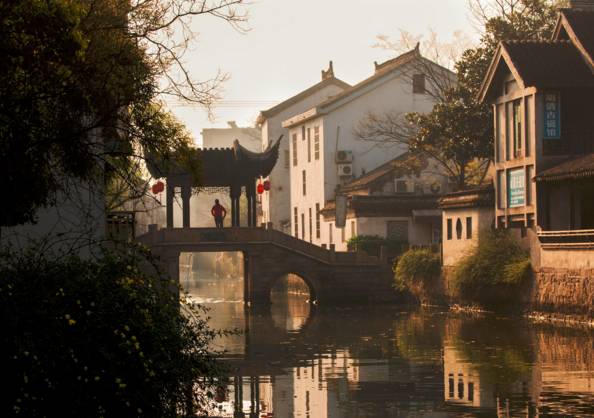 ”传说中的你,像睡梦中的少女,我看更像水做的新娘。桥是水的屋顶,路就是水巷,躺在船上走,巷变成了水床"...这里有着柔情如水般的江南水乡风情。