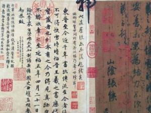 启功另著有《〈唐摹万岁通天帖〉书后》一文,认为《快雪时晴帖》偏左下方有“山阴张侯”四字,是对收信人的称呼。古人用素纸卷写信,纸面朝外,随写从右端随卷,卷时仍是字面朝外。写完时,后边留一段余纸里在外层,题写收信人。这种写法,一直沿续到明代文徵明时还留有实物。《柏酒帖》中“范武骑”三字同样也是封题,也较靠下。“原封的样子虽仍未见,但可推知这是当时的一种习惯。”