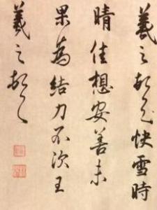 羲之顿首:快雪时晴,佳。想安善。未果为结,力不次。王羲之顿首。山阴张侯。