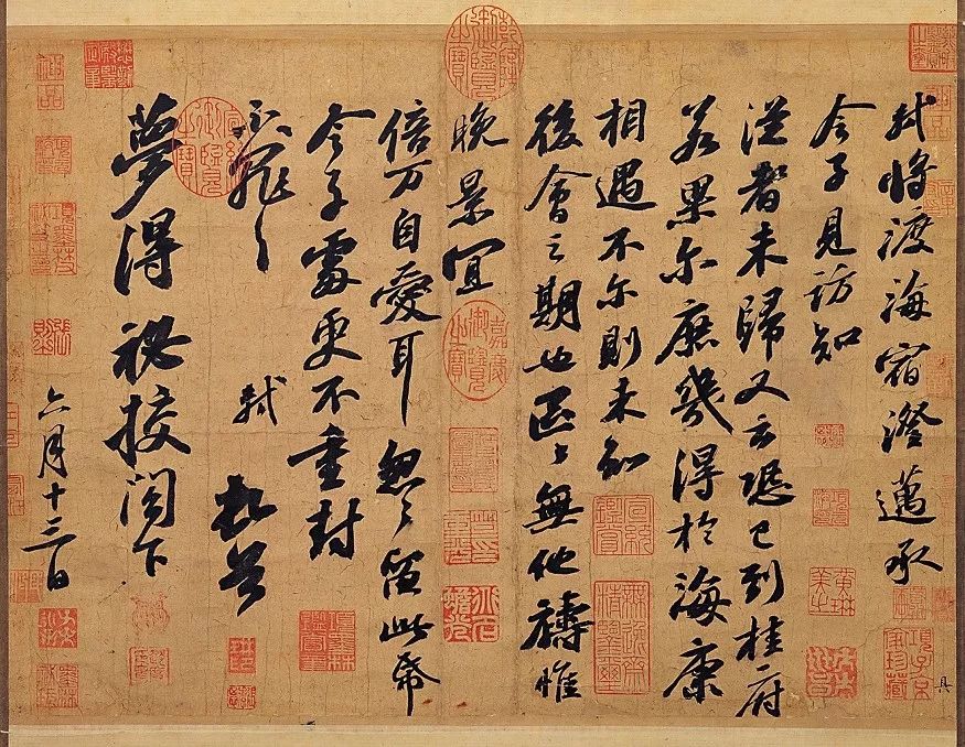 轼将渡海。宿澄迈。承令子见访。知从者未归。又云。恐已到桂府。若果尔。庶几得於海康相遇。不尔。则未知后会之期也。区区无他祷。惟晚景宜,倍万自爱耳。忽忽留此帋令子处。更不重封。不罪不罪。轼顿首。梦得秘校阁下。六月十三日。