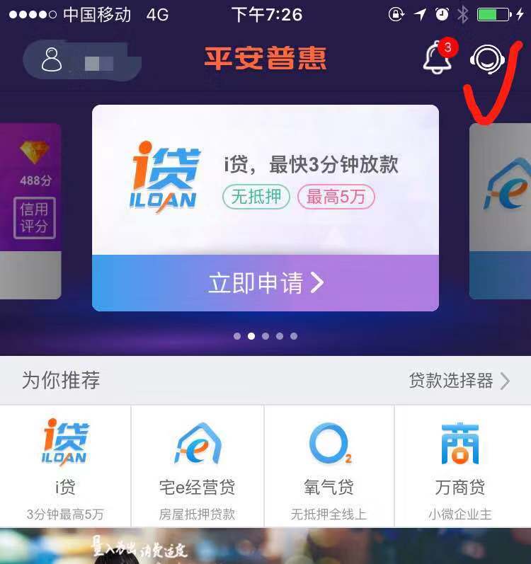 1,登陆自己平安普惠APP。点击右上角标志接入在线客服。