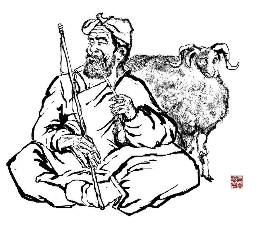 了一只羊赶着上路了。其实,牧羊人并未真走,而是藏匿在山野里。待夜深