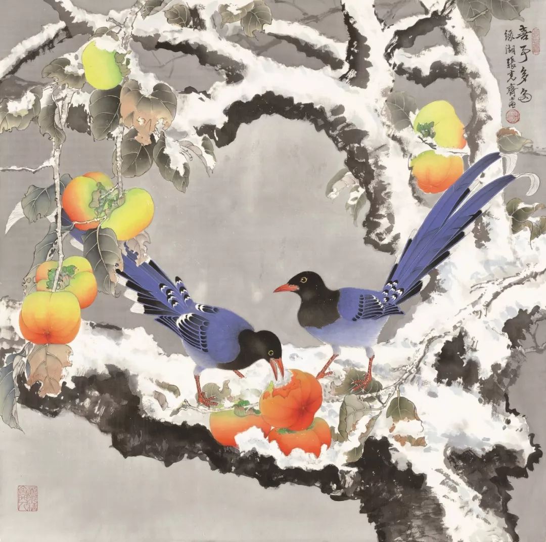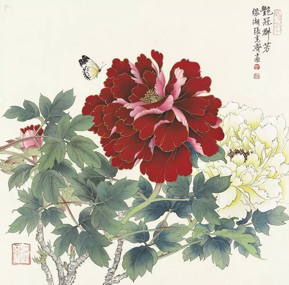 造诣精湛,功力深厚,技法更为全面,工笔、写意、重彩、白描都很精熟,无论山水人物、花鸟走兽,无一不能,其才艺之广博而又众扇皆陈,在近代画家中实不多见。
