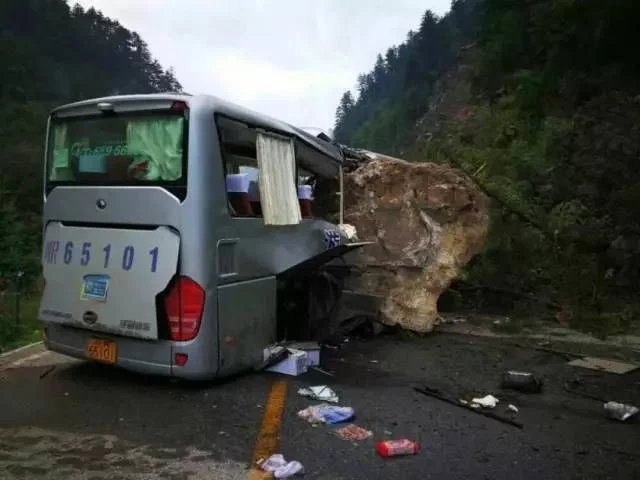 8月8日晚,南充市民易玉兰乘坐旅游大巴(川R65101)和女儿、外孙一起前往若尔盖旅游,行驶至九寨沟神仙池路口附近时,被山上一块因地震滚落的石头砸中,坐在正数第五排靠右边的易玉兰被石头砸到,不幸遇难。