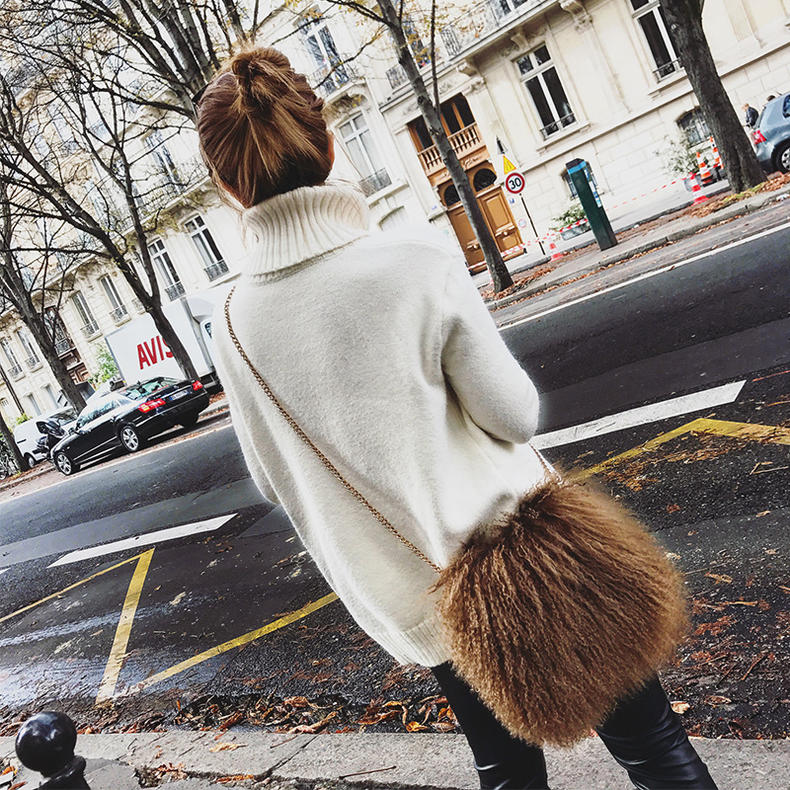 两边开叉不规则高领毛衣设计上相对还是比较俏皮的,没有以往毛衣的古板,更添了一些新意,搭配纱裙,少女感满满。满足了大众少女心的搭配呢。