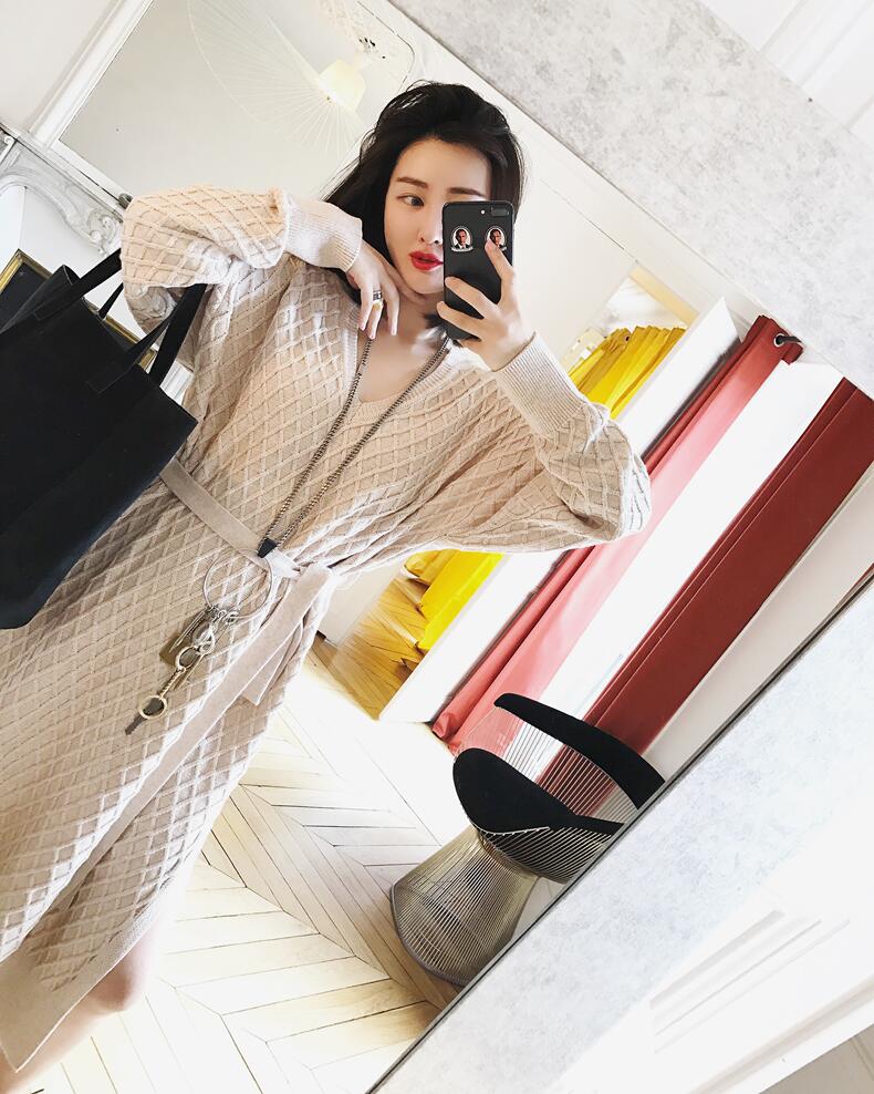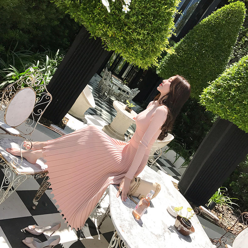 针织的触感柔软舒适,不论是内搭还是外穿都是不错的单品。修身的针织包臀连衣裙搭配这季依然很流行的百褶裙,毫无违和感,加上撞色宽的平板鞋有一种本身就是套装的感觉。