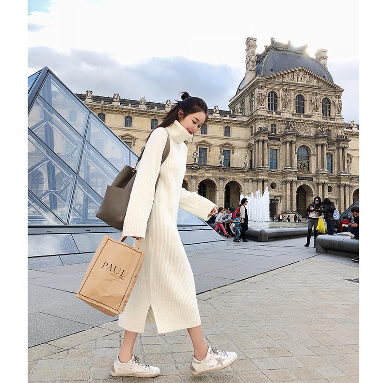 高领修身针织裙展现玲珑曲线穿出轻熟风情,冬季自然是少不了一件这样纯色的内搭了,裙身下摆做了开叉的设计,对身材的包容性很好,上身穿也比较方便,更有小女人的气质。长度也很好驾驭的,刚好在膝盖以下,小个子女生也能穿搭自如哦。