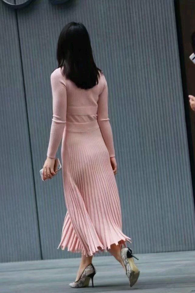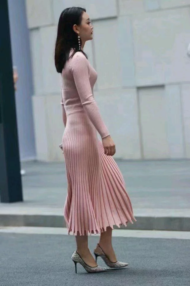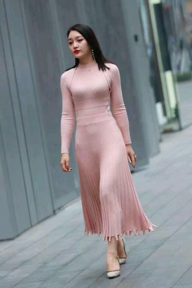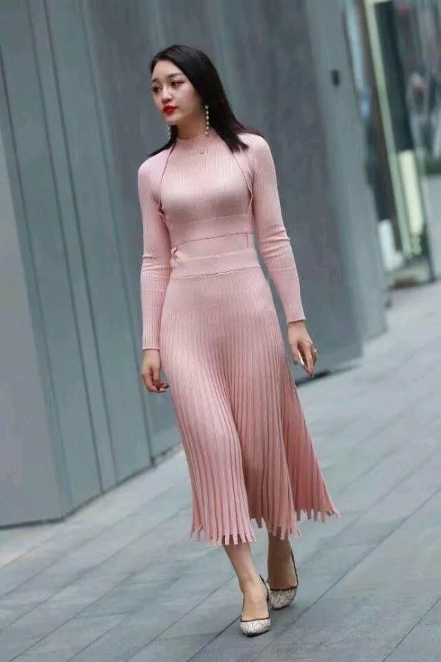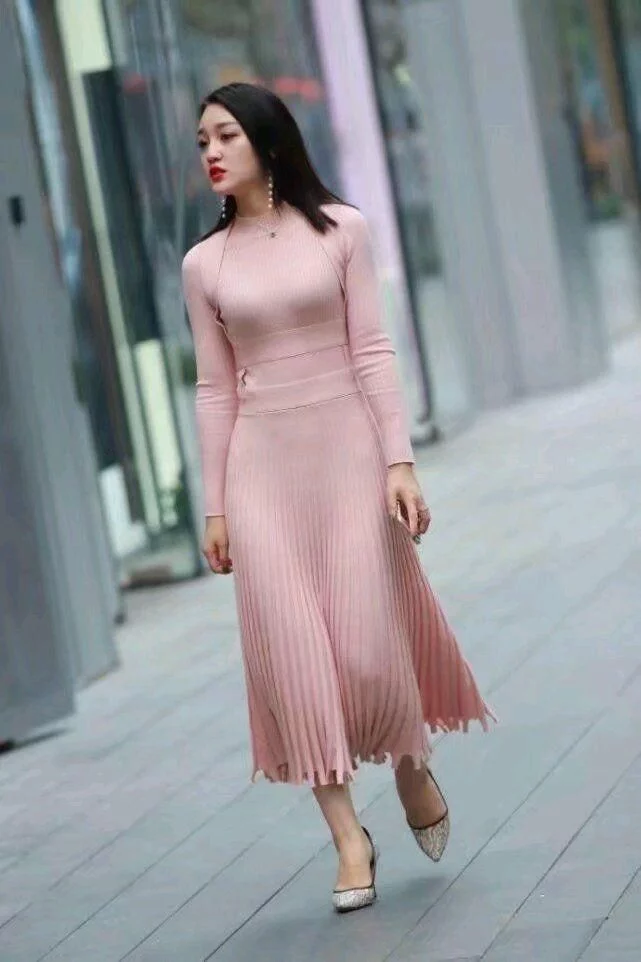 这个姐姐一身粉色的紧身长裙,眉目如画的精致的五官,看起来很是可爱,合身的裁剪更能完美的呈现身体的曲线,上身紧身的款式将凹凸分明的身材修饰的越发楚楚动人,下身宽大的裙摆,规则的条纹,一双高跟鞋,就能完美的衬托出身体的曲线,优雅文静的气质迷倒无数人。