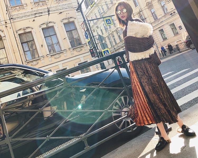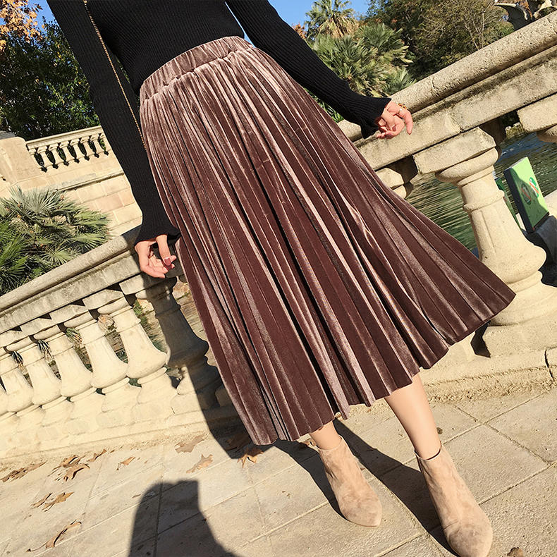 丝绒百褶裙是2018年最佳的流行单品,这款丝绒闪闪亮亮的感觉,让你走在人群中就是耀眼的那个。这款百褶裙是上身以后律动感很强,即使上身搭配一件简简单单的T恤看起来也是美美的。