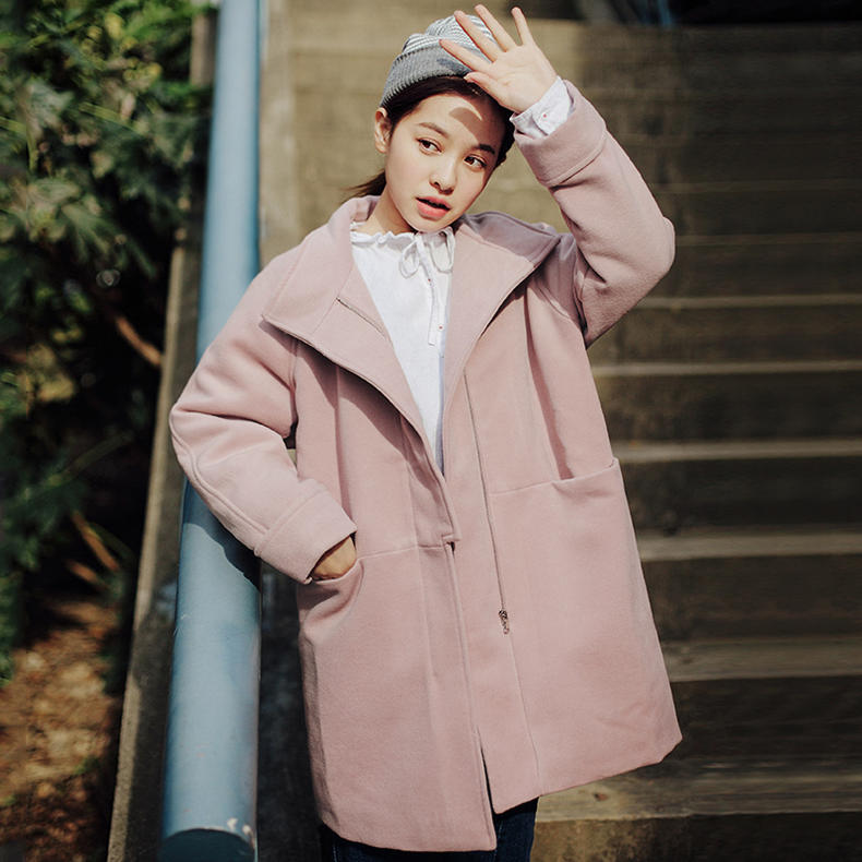 这款甜美风格的大衣,立领款式,冬季穿着非常挡风,内里是棉的,摸起来柔软,穿起来也很舒服。门襟不规则剪裁,袖口翻边的设计,简约又不失小细节,加上长度非常适中,小个子MM