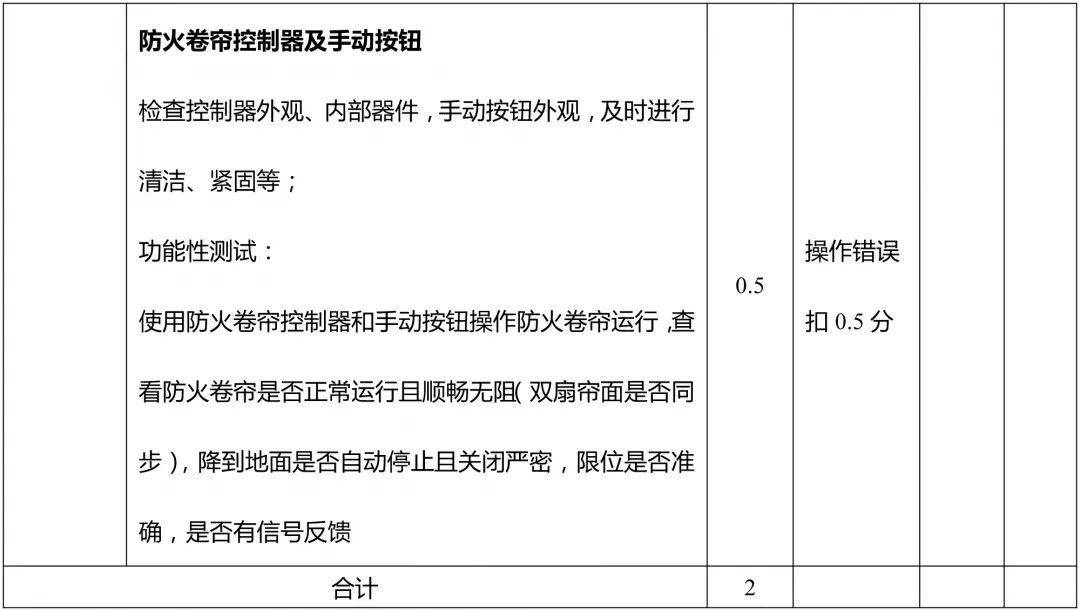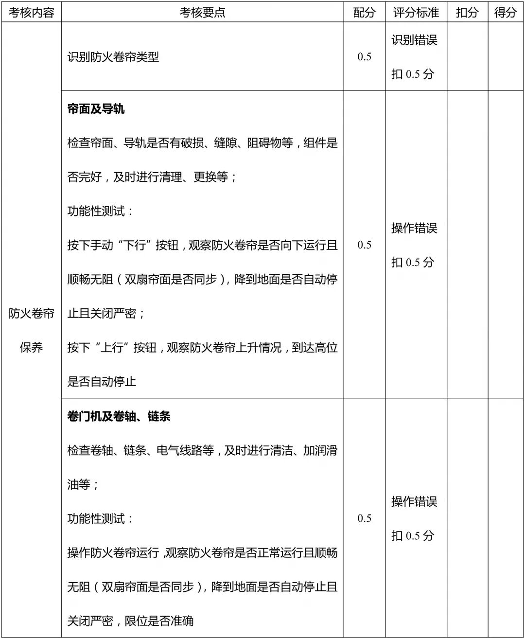 2.考核要求:能熟练掌握防火卷帘的保养内容和方法。