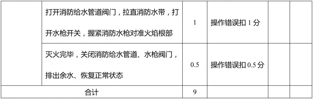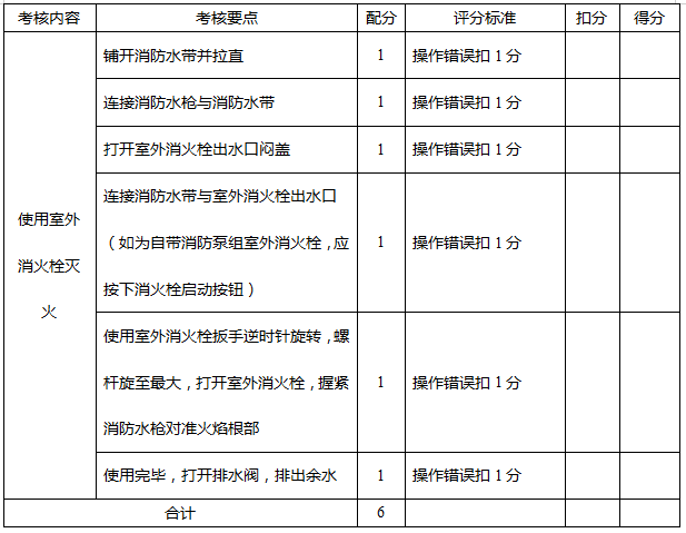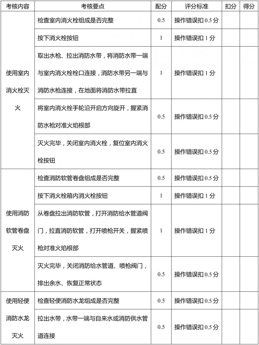 2.考核要求:使用室内消火栓、消防软管卷盘、轻便消防水龙进行灭火。