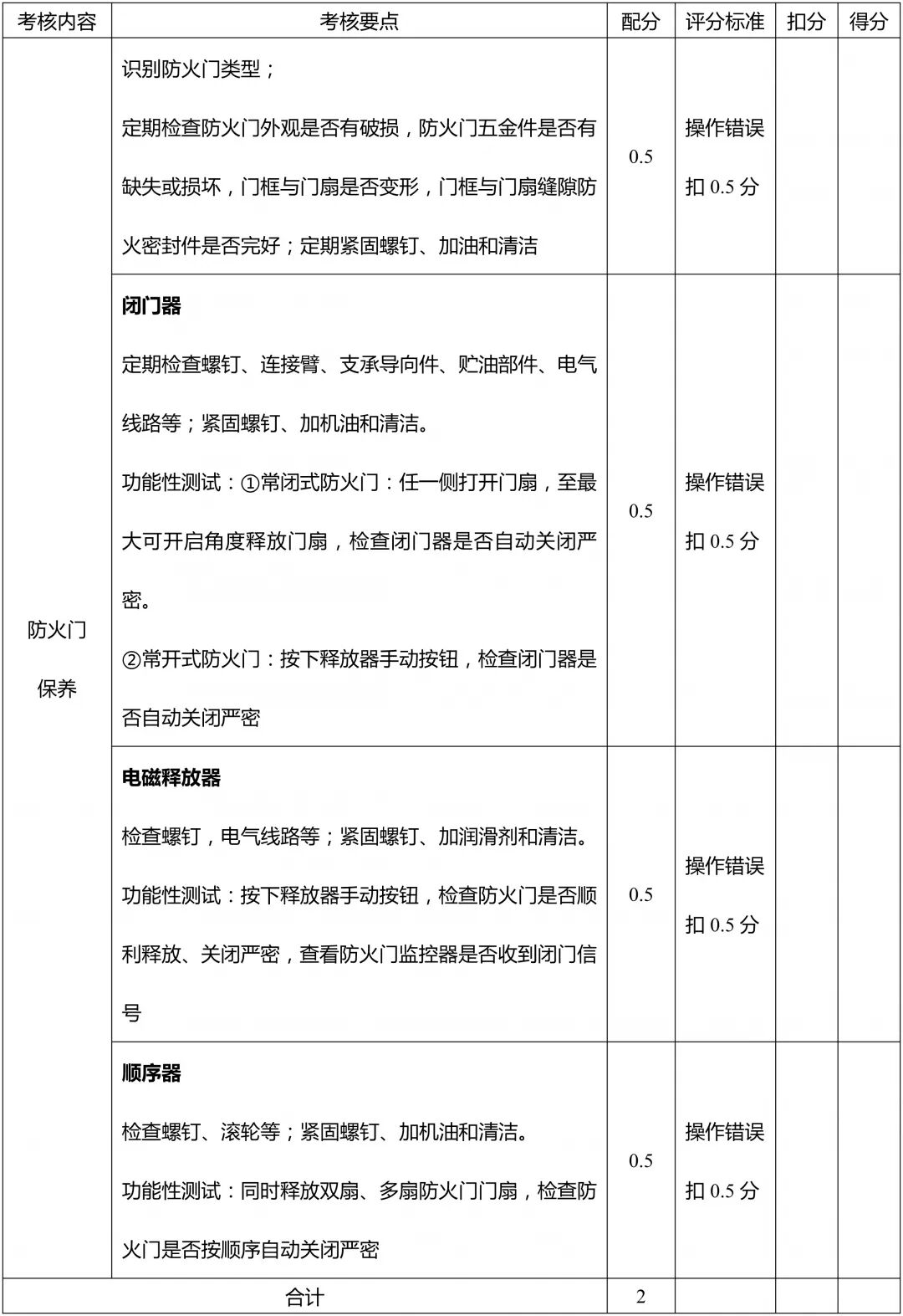 2.考核要求:能准确识别防火门类型,熟练掌握防火门的保养内容和方法。