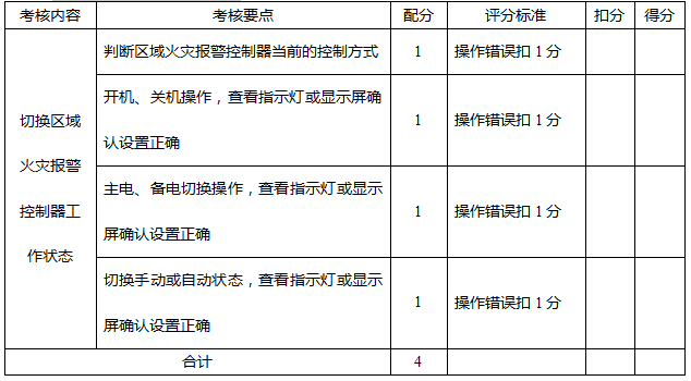 2.考核要求:能按照正确的步骤进行区域火灾报警控制器开机/关机操作,主电、备电切换操作,设定区域火灾报警控制器的手动或自动状态。