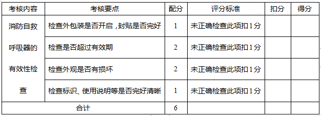 2.考核要求:能正确检查和判断消防自救呼吸器的有效性。