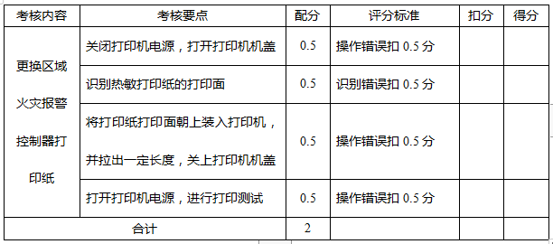 2.考核要求:能按照正确步骤更换区域火灾报警控制器的打印纸。