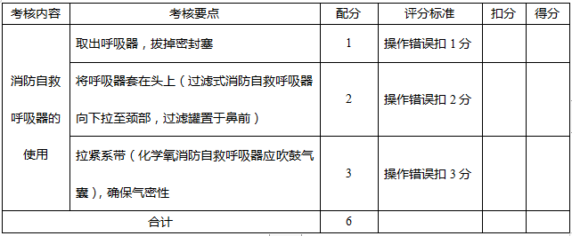 2.考核要求:能熟练掌握消防自救呼吸器的使用方法和注意事项。