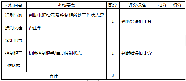 2.考核要求:能识别与切换消火栓泵组电气控制柜工作状态。
