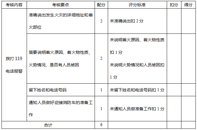 2.考核要求:能正确拨打火警电话并熟练掌握火警信息报告内容。